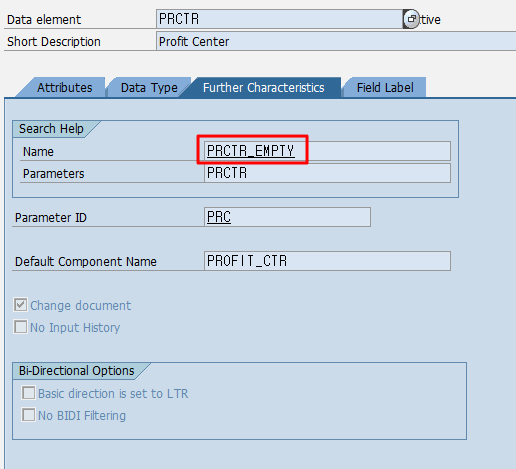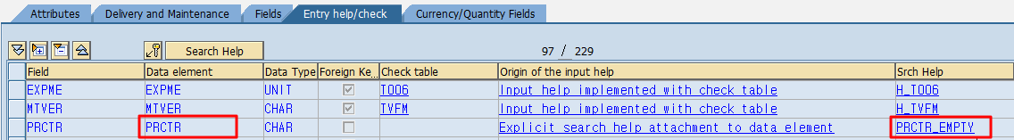 필드가 기술적, 내용적 속성이 나오고, Search Help가 적용되어 있는지 어떤 종류가 적용되어 있는지 나와있다.