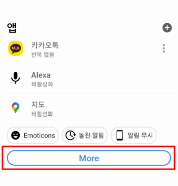 하단의 앱에서 More를 누릅니다. 앱이 버전별로 버튼 이름이 다를 수도 있겠네요. 더보기를 누른다 생각하면 될듯합니다.