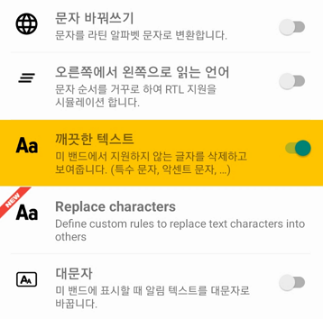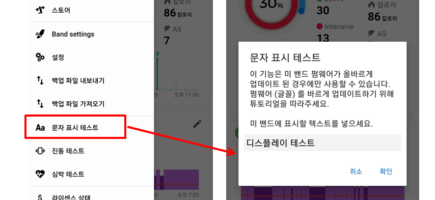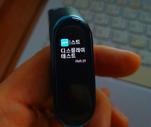 테스트는 Notify for Mi Band 앱 하단 문자 표시 테스트로 해봐도 됩니다. 잘~나 옵니다.