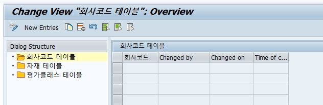 먼저 유지보수 뷰나 테이블 3개를 만들고 Maintenance Dialog를 생성합니다. 대상 오브젝트들은 회사코드(BUKRS) 필드를 키로 가지도록 만드어 주겠습니다.